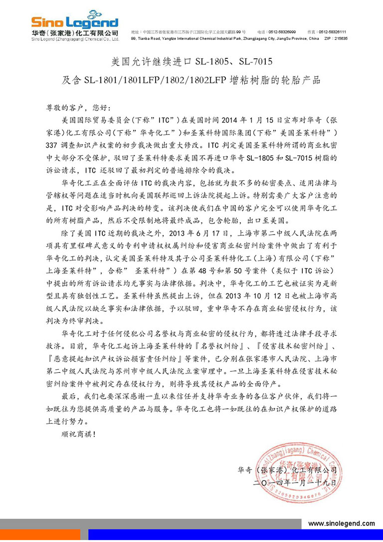 中国法院判决1XBETapp最新版下载胜诉后,美国ITC终裁允许进口SL-1805、SL-7015树脂及含SL-1801类增粘树脂的轮胎产品